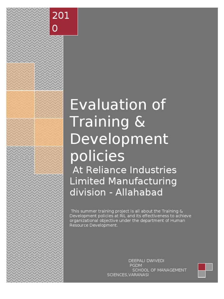 Training And Development Project Of Ril Allahabad Yarn